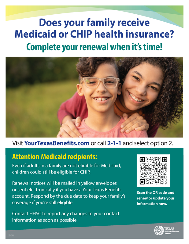 Medicaid and CHIP health insurance coverage continued during the COVID-19 public health emergency, and did not require renewal during this time. This continuous coverage ended in March 2023, and recipients must renew their coverage before the date it expires (which will vary). For more information, click here.